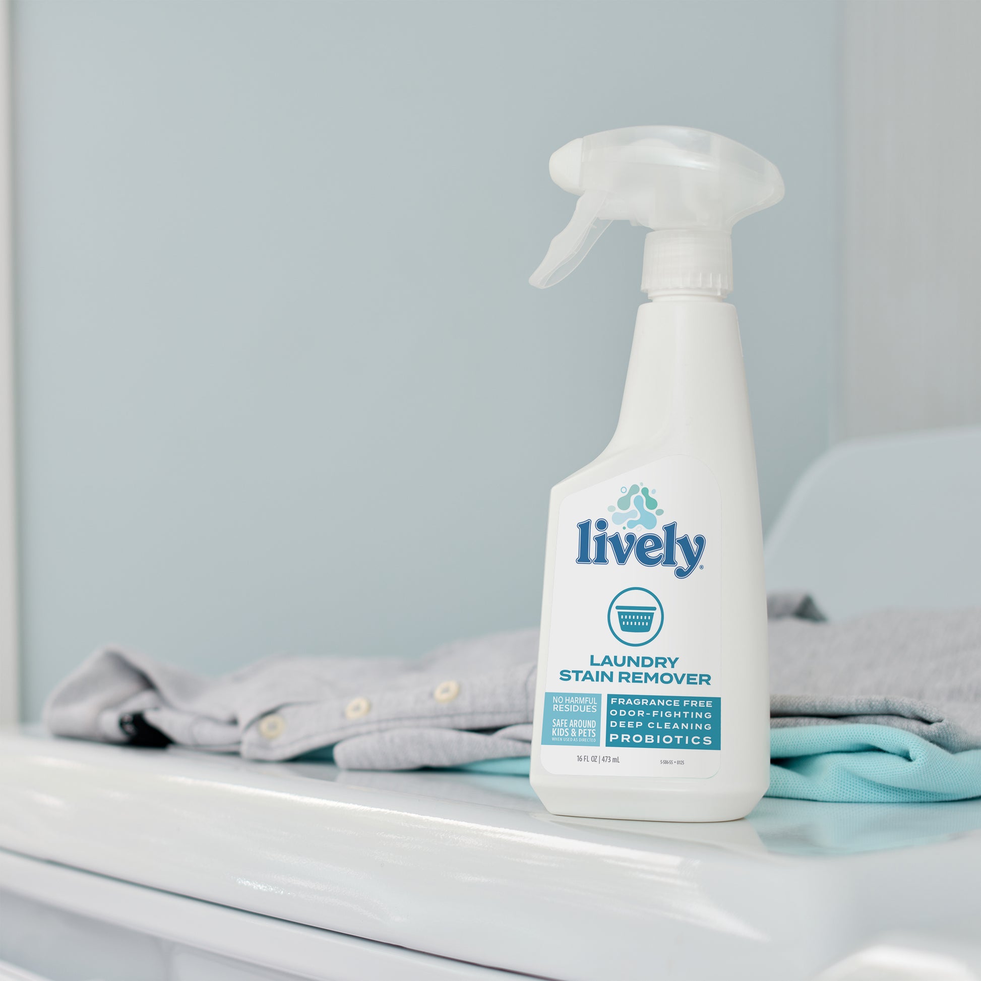 No more stressing over splatters and spills. From everyday dribbles to mystery smudges, Lively’s Laundry Stain Remover has your back. Powered by the natural cleaning power of probiotics, it tackles tough blotches on your favorite shirts and family linens at the source giving your clothes a deeper, fresher clean without the effects of conventional chemicals.